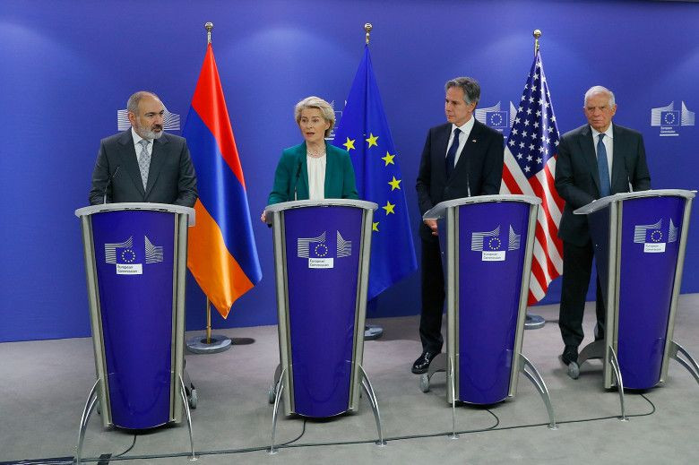 Ապրիլի 5-ին Բրյուսելում Փաշինյանի, Ուրսուլա ֆոն դեր Լայենի ու Էնթոնի Բլինքենի հանդիպումը ինչ-որ չափով պարզ դարձրեց նաև Արևմուտքի գործելակերպը։ Հանդիպումից առաջ այնպիսի սպասումներ էին ստեղծվել, թե Արևմուտքը փորձելու է ահռելի գումարներ ներդնել Հայաստանում ու որոշակի անվտանգության երաշխիքներ ստեղծել։ Բայց հանդիպման արդյունքում խոսվեց ընդամենը մի քանի տասնակ միլիոն դոլարի աջակցության մասին, իսկ Հայաստանի համար անվտանգության երաշխիքների մասին ոչինչ չնշվեց։ Ավելին, հանդիպումից որոշ ժամանակ անց ԵՄ արտաքին հարաբերությունների խոսնակ Պետեր Ստանոն հայտարարեց՝ Ադրբեջանն ու Հայաստանը պետք է իրենք լուծումը գտնեն՝ ոչ ոք չի կարող խնդիրը լուծել ձեր փոխարեն, ոչ ոք չի կարող ձեզ լուծումներ պարտադրել։