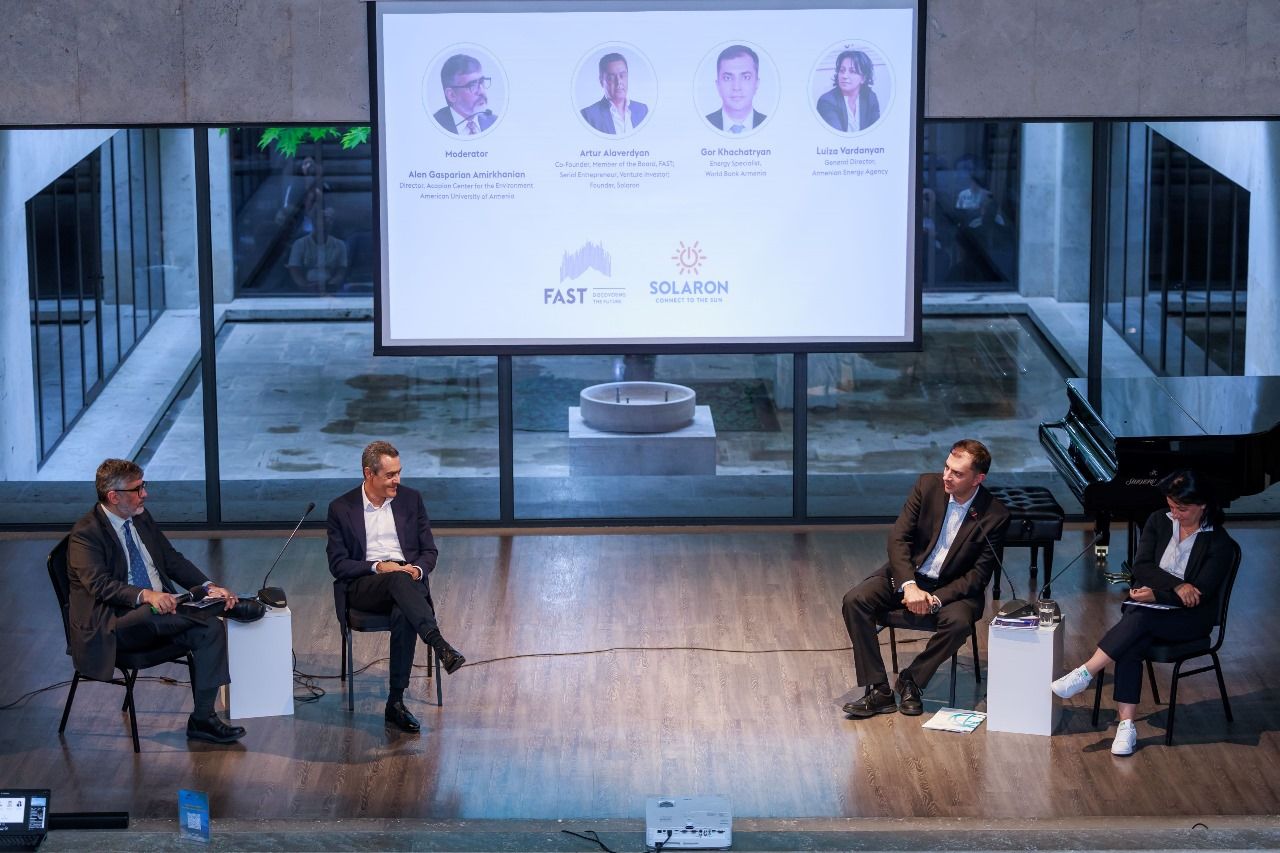Այնուհետև տեղի ունեցավ պանելային քննարկում Հայաստանի էներգետիկ ապագայի շուրջ, որին մասնակցում էին Ամերիկյան համալսարանի Յակոբեան բնապահպանական կենտրոնի տնօրեն Ալեն Ամիրխանյանը, Էներգետիկայի հայկական գործակալության գլխավոր տնօրեն Լուիզա Վարդանյանը, Համաշխարհային բանկի էներգետիկայի մասնագետ Գոռ Խաչատրյանը և Solaron-ի համահիմնադիր Արթուր Ալավերդյանը:
