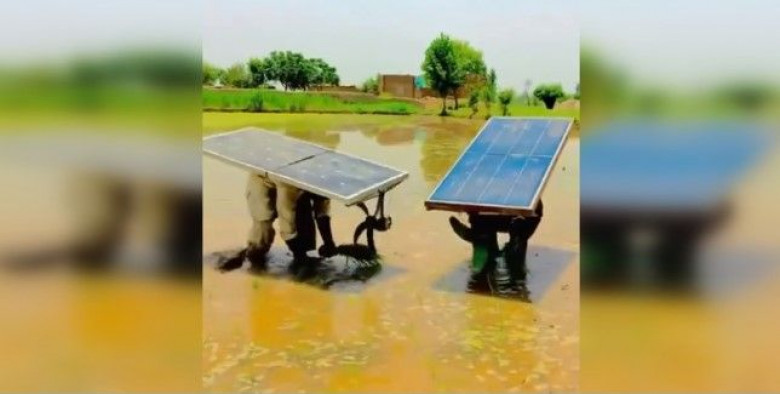 Համացանցում հայտնվել է մի տեսանյութ, որտեղ երևում է, որ մարդիկ աշխատում են դաշտում, և նրանց մեջքերի վրա ամրացված են արևային մարտկոցներ՝ վենտիլյատորներ աշխատացնելու համար: Կադրերը հրապարակվել են YouTube-ի balooch pirghar ալիքում։ Տեսանյութում երևում է, թե ինչպես են երկու հոգի շոգ եղանակին ձեռքով բրինձ հավաքում։ Դրանցից յուրաքանչյուրի վրա մեջքին կարելի է տեսնել արևային մարտկոց, որի շնորհիվ վենտիլյատորներն աշխատում են գլխի մոտ ապահովելով զովություն։ Միևնույն ժամանակ, աշխատողներից մեկի մոտ սարքն ավելի վատ է աշխատում, հավանաբար արևային վահանակի աղտոտվածության պատճառով։ Տեսանյութի երկրորդ կերպարի վենտիլյատորի թևերն ավելի արագ են պտտվում։