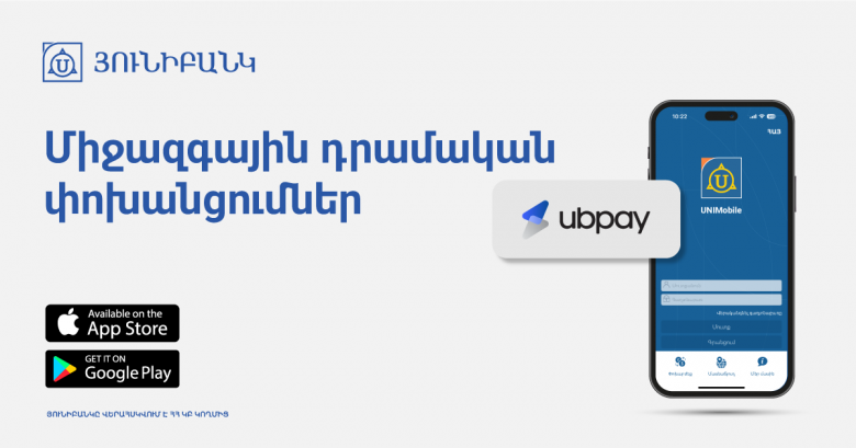 UBPay-ի դրամական փոխանցումներն արդեն հասանելի են Յունիբանկի մոբայլ հավելվածում