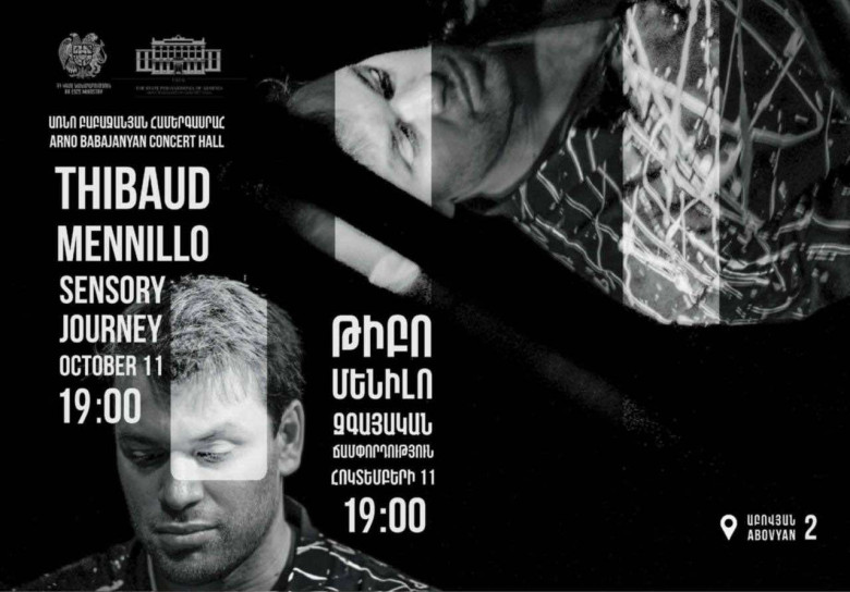 Առնո Բաբաջանյան համերգասրահում տեղի կունենա Փարիզից ժամանաց Թիբո Մենիլոյի "Զգայական ճամփորդություն" Իմպրովիզացիա՝ ոգեշնչված Բախի, Ռավելի, Դեբյուսիի, Կոմիտասի, Գյուրջիևի. Առնո Բաբաջանյանի, Օլիվյե Մեսսյանի և Քիթ Ջարեթի ստեղծագործություններով: