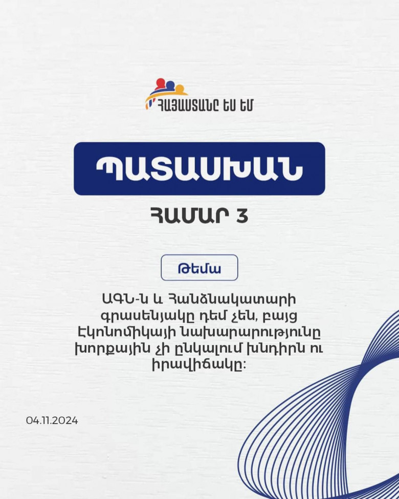Քաղաքականություն«Հայաստանը ես եմ» նախաձեռնությունը ներկայացրել է ՀՀ պետական կառույցներից ստացած 3-րդ առաջարկ-պահանջի պատասխանը։