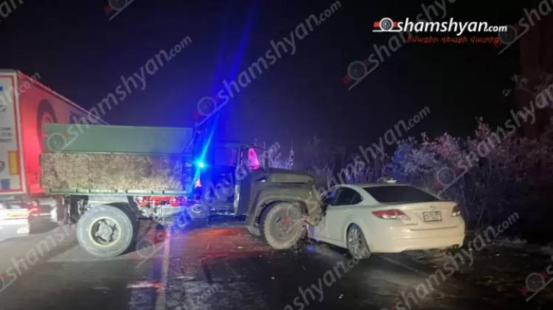 ՀասարակությունԵրեկ՝ նոյեմբերի 11-ին, խոշոր ավտովթար է տեղի ունեցել Արագածոտնի մարզում։ Ժամը 20։10-ի սահմաններում Երևան-Գյումրի M1 ավտոճանապարհի 37 կմ հատվածում՝ Ուջան գյուղի վարչական տարածքում, բախվել են «Mazda» մակնիշի ավտոմեքենան և «ЗИЛ 130» մակնիշի բեռնատարը։
