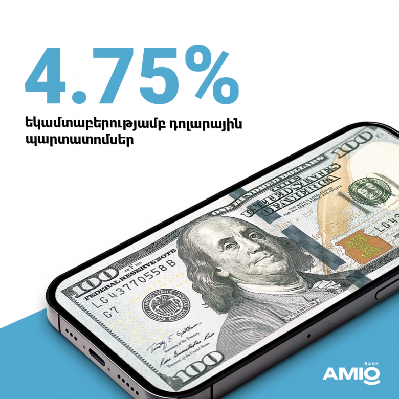 Ավելացրու անձնական ֆինանսական միջոցներդ` ձեռք բերելով Ամիօ բանկի անվանական, չփոխարկվող արժեկտրոնային, ոչ փաստաթղթային դոլարային պարտատոմսերը՝ հետևյալ պայմաններով․