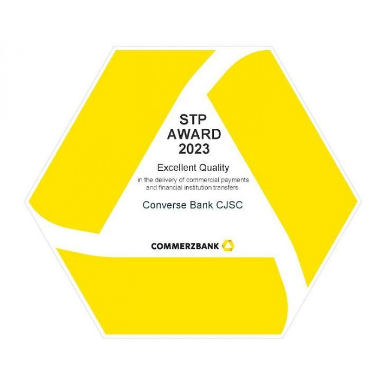 ՀասարակությունԿոնվերս Բանկն արդեն հինգերորդ անգամ արժանանում է Commerzbank AG բանկի որակի գերազանցության «STP Excellence Award» հեղինակավոր մրցանակին: Այն Բանկին է շնորհվել SWIFT համակարգով իրականացվող միջազգային փոխանցումների կատարողական բարձր մակարդակի ապահովման համար:
