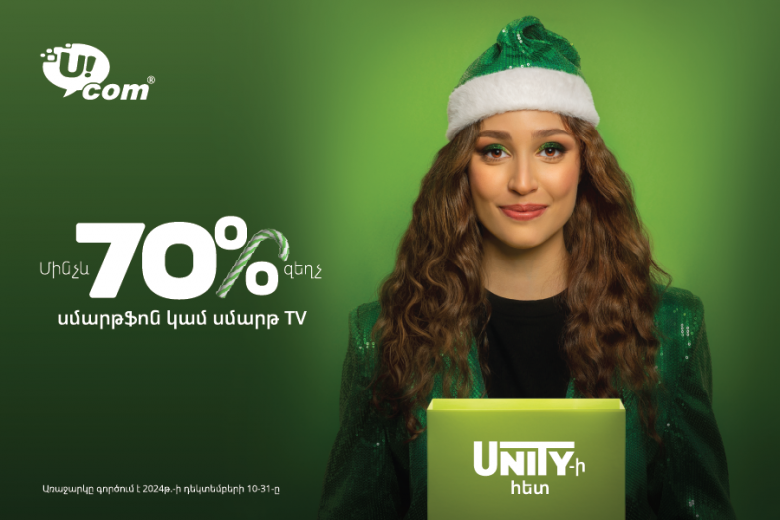 Նոր տարին Ucom-ի ֆիքսված կապը միացնելու լավագույն ժամանակն է՝ ընկերությունը հայտարարում է ամանորյա ակցիա, որի շրջանակում Unity փաթեթներին միացող բաժանորդները կստանան մինչև 70% զեղչ՝ ընկերության վաճառքի և սպասարկման կենտրոններից կամ պաշտոնական կայքից հեռախոս և հեռուստացույց ձեռք բերելու համար։