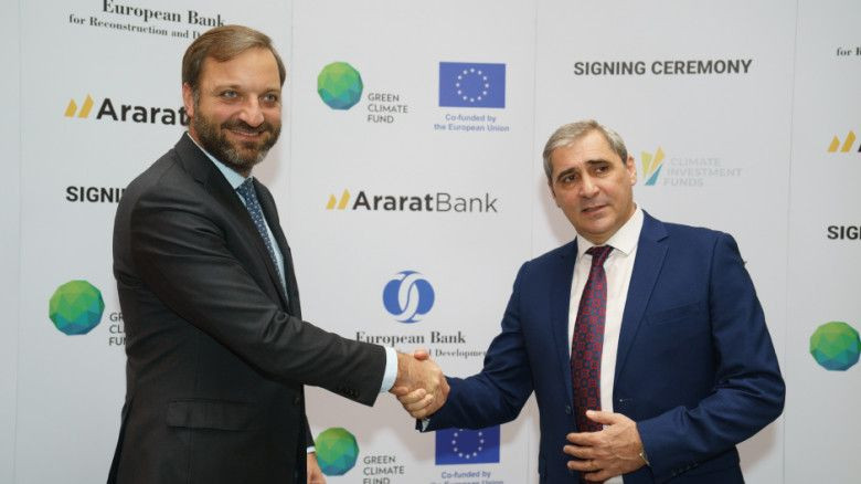 ՀասարակությունԱրարատԲանկը ու Վերակառուցման և զարգացման եվրոպական բանկը (ՎԶԵԲ) ստորագրեցին 10 միլիոն ԱՄՆ դոլարի վարկային պայմանագիր՝ ուղղված կանաչ նախաձեռնությունների և մրցունակության խթանմանը։ Ծրագիրն իրականացվում է Եվրամիության (ԵՄ), Կանաչ կլիմայի հիմնադրամի (ԿԿՀ) և Կլիմայական նախաձեռնությունների հիմնադրամի (ԿՆՀ) գործընկերությամբ։