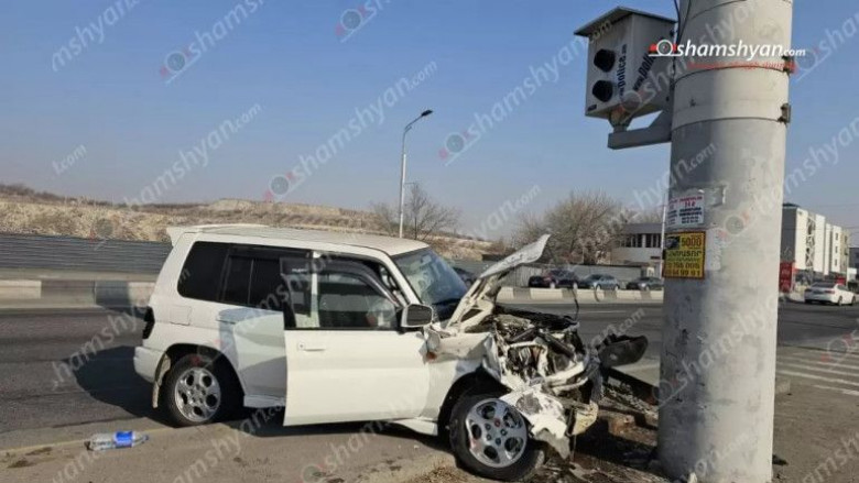 Երևանում «Mitsubishi»-ն դուրս է եկել երթևեկելի գոտուց և բախվել երկաթե սյանը