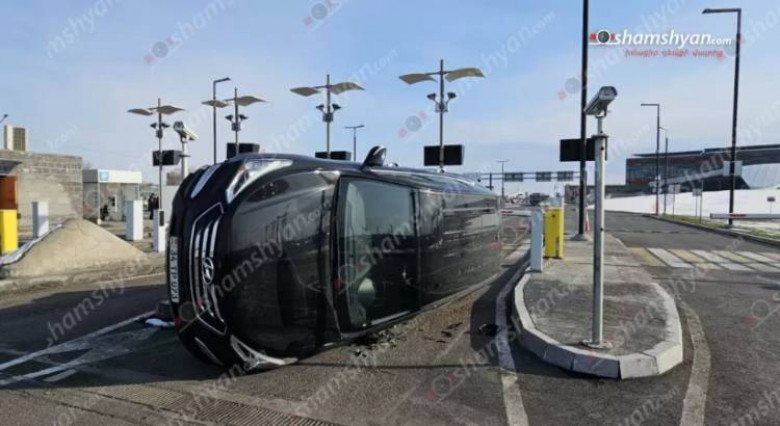 «Զվարթնոց» օդանավակայանում «Hyundai»-ը բախվել է պաշտպանիչ բետոնե հատվածին ու կողաշրջվել. Shamshyan