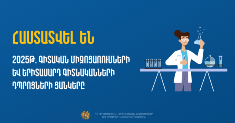 Հայտնի են 2025 թ. պետական ֆինանսավորում ստացող գիտական միջոցառումները և երիտասարդ գիտնականների դպրոցները