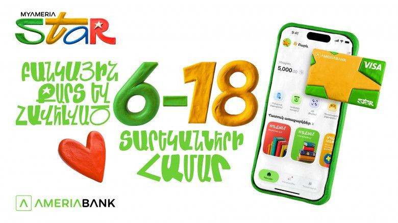 MyAmeria Star․ Ամերիաբանկը ներկայացնում է բանկային քարտ և հավելված 6-18 տարեկանների համար