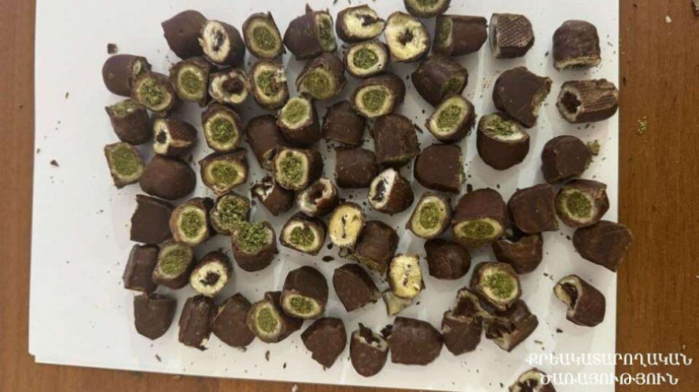 Հանձնուքում առկա շոկոլադե կոնֆետներից 45-ի միջից ծառայողները հայտնաբերել են մարիխուանա տեսակի թմրամիջոցին նմանվող, դեղնականաչավուն զանգվածներ, որոնց քաշը կոնֆետների հետ միասին կազմել է 264,94 գրամ։ Իսկ 27 կոնֆետի միջից հայտնաբերվել են թմրամիջոցի նմանվող, սպիտակ զանգվածներ, որոնց քաշը կոնֆետների հետ միասին կազմել է 142,95 գրամ։