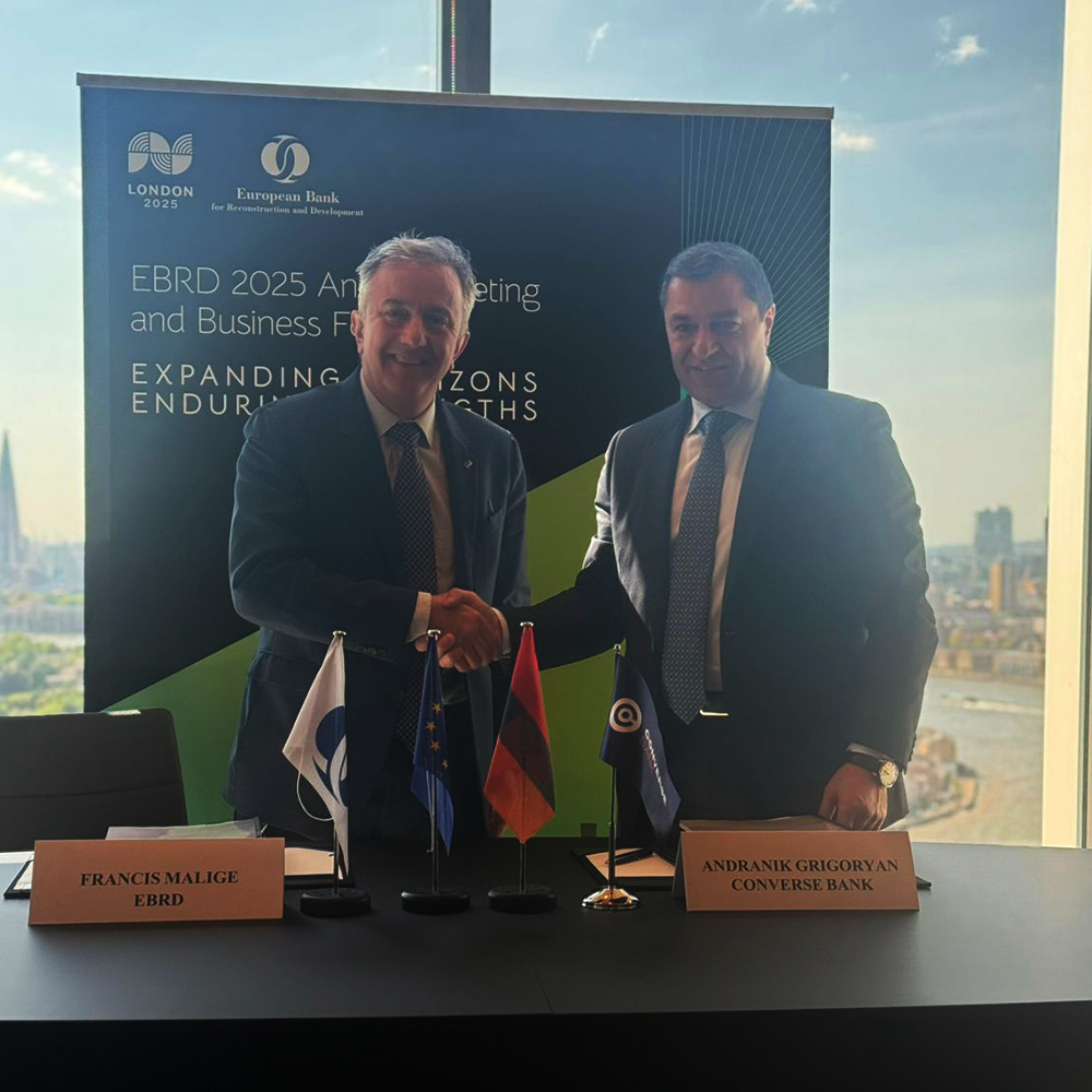 ՀասարակությունԿոնվերս Բանկը և Վերակառուցման և զարգացման եվրոպական բանկը (ՎԶԵԲ) Լոնդոնում ընթացող ՎԶԵԲ-ի տարեկան ժողովի ընթացքում ստորագրել են ընդհանուր 8 մլն ԱՄՆ դոլարի երկու վարկային համաձայնագիր: