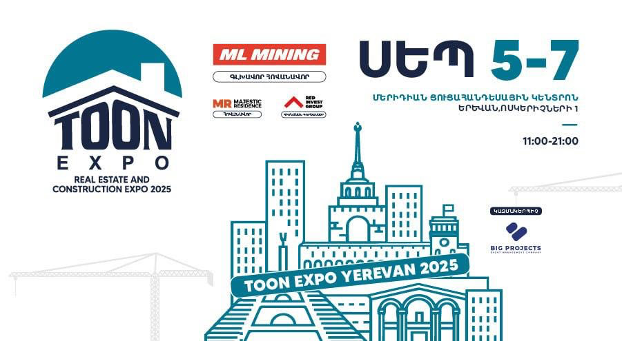 Հիմա ուշադրության կենտրոնում է TOON EXPO YEREVAN 2025-ը, որը կանցկացվի սեպտեմբերի 5-7-ը, Երևանի ՄԵՐԻԴԻԱՆ ցուցահանդեսային կենտրոնում, Երևանում արդեն 5-րդ անգամ։ Այն մեկ հարթակում կհամախմբի առաջատար կառուցապատողներին, ներդրումային առաջարկներն ու շուկայի միտումները։
