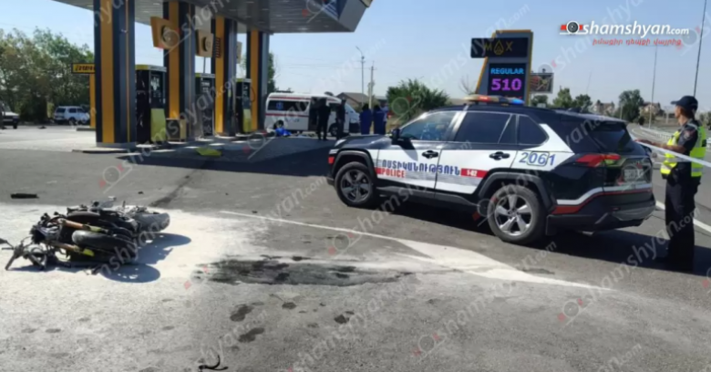Մոտոցիկլավարը տեղում մահացել է, իսկ բախման հետևանքով հրդեհ է բռնկվել և բենզալցակայանի աշխատակիցները մարել են այն։