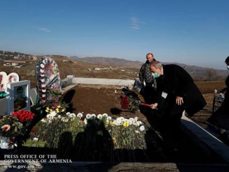 Կառավարության ղեկավարը հարգանքի տուրք է մատուցել արցախյան ազատամարտում իրենց կյանքը Հայրենիքի պաշտպանության համար զոհաբերած հերոսների հիշատակին, ծնկի իջել եւ ծաղիկներ խոնարհել նրանց շիրիմներին։