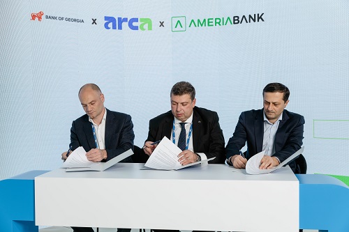 ՎիդեոԵրևանում կայացած միջազգային PLUS ֆորումի շրջանակում Arca ազգային վճարային համակարգը, Բենք օֆ Ջորջիա ՋիԷսՍի-ին (Bank of Georgia JSC) և Ամերիաբանկը ստորագրեցին փոխըմբռնման հուշագիր: