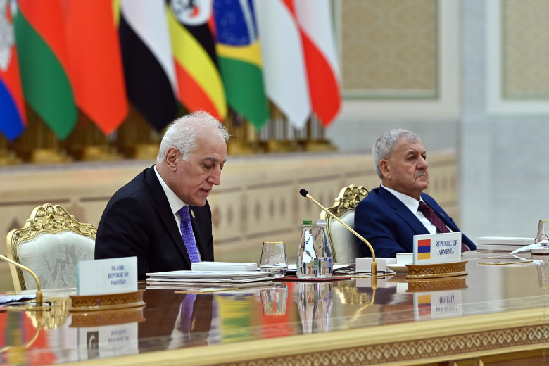 Ռուսաստանի նախագահի օգնական Յուրի Ուշակովը տեղեկացրել է, որ Աշքաբադի միջազգային համաժողովում ԱՊՀ երկրների պատվիրակությունների ղեկավարների մեծ մասը հաղորդակցվում էր ռուսերեն լեզվով։ Ռուսերենը չէին օգտագործում միայն Վրաստանի և Հայաստանի ներկայացուցիչները, ինչը տարակուսանքով է ընդունվել ռուսական կողմից։ Թեպետ բացահայտ քննադատություն չի հնչել, բայց ակնհայտ է, որ ռուսական կողմը չափազանց ծանր է տանում նման դեմարշները, առավել ևս, որ Հայաստանի բարձրաստիճան պաշտոնյաները ռուսերեն լեզվին տիրապետում են։