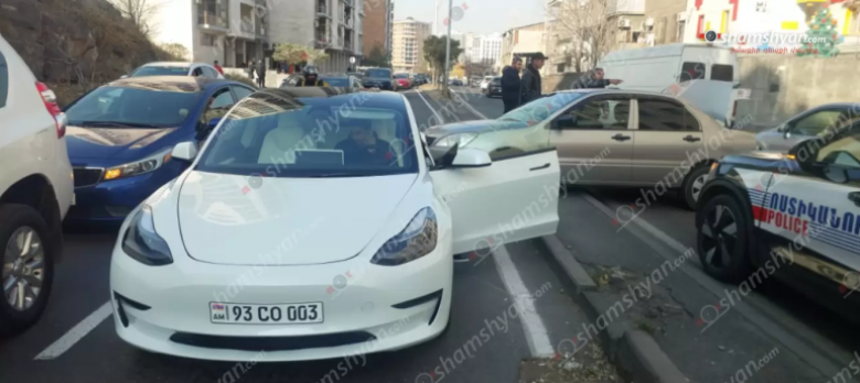 Երևանի Անտառային փողոցում բախվել են «Tesla»-ն, «Mercedes»-ն ու «Mitsubishi»-ն