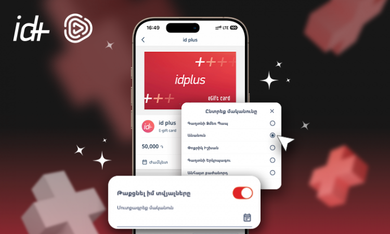 Idplus-ի հետ կարող եք վստահ լինել, որ Ձեր նվերն իսկապես արժեքավոր ու սպասված կլինի ստացողի համար, ամենակարևորը՝ նա ինքնուրույն կարող է ընտրել իր նվերն ու թվային նվեր-քարտով վճարել ամենուր, ուր կա Idram&IDBank հավելվածի Իդրամ QR-ով վճարելու հնարավորություն, այսինքն՝ 25․000-ից ավելի վաճառակետերում ողջ Հայաստանի տարածքում։