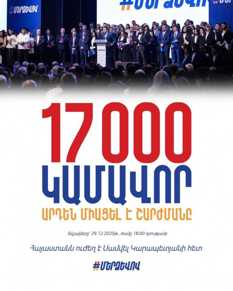 Քաղաքականություն17,000 կամավորական արդեն միացել է շարժմանը, տարածել է Մեր ձևով ժողովրդական շարժումը: