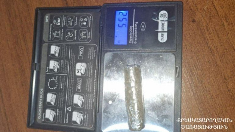 Խուզարկության արդյունքում վերջինիս մոտից հայտնաբերել են թմրամիջոցի նմանվող դեղնականաչավուն, բուսական զանգված՝ 5.52 գրամ քաշով: Հայտնաբերված զանգվածն ուղարկվել է ՀՀ ՔԿ Արմավիրի մարզային քննչական վարչության Վաղարշապատի քննչական բաժին: