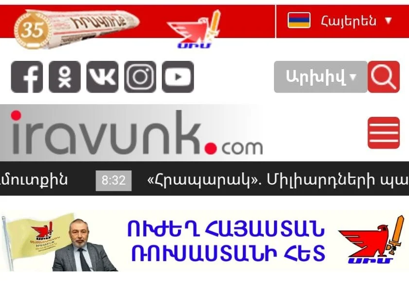 Քաղաքականություն«Սահմանադրական իրավունք միություն» Կուսակցությունը (ՍԻՄ), նախապատրաստվում է ԱԺ ընտրությունների։ Կուսակցության կողմից հիմնադրված «ԻՐԱՎՈՒՆՔ» (Հայաստանի ամենամեծ թերթը) թերթի կայքում հայտնվել է կուսակցության ընտրական կարգախոսը՝ «Ուժեղ Հայաստան Ռուսաստանի հետ»։ Սա շարժման անվանումն է, որը ՍԻՄ կուսակցությունը նախաձեռնել է 5 տարի առաջ և ակտիվորեն գործել է այդ ընթացքում։ Հնարավոր է, որ կուսակցությունը ընտրություններին մասնակցի «Ուժեղ Հայաստան Ռուսաստանի հետ» անունով բլոկի կազմում՝ այդ շարժմանը միացած այլ կուսակցությունների հետ դաշինքով։ iravunk.com կայքում հայտնվել են նաև ՍԻՄ-ի այլ կարգախոսներ. «Ոչ Նիկոլին, այո անկախության հռչակագրին»։ ՍԻՄ-ը Հայաստանի ամենահին կուսակցություններից մեկն է, իսկ նրա առաջնորդ Հայկ Բաբուխանյանը Հայաստանի անկախության հռչակագրի համահեղինակն է։ Բացի այդ, ՍԻՄ-ն հենց այն կետերն է ներառել հռչակագրում, որոնց չեղարկումն այժմ պահանջում է Ադրբեջանը։ Կուսակցությունն ունի մեծ փորձ պատգամավորական աշխատանքում. այն ներկայացված է եղել Հայաստանի խորհրդարանի 6 գումարման մեջ։